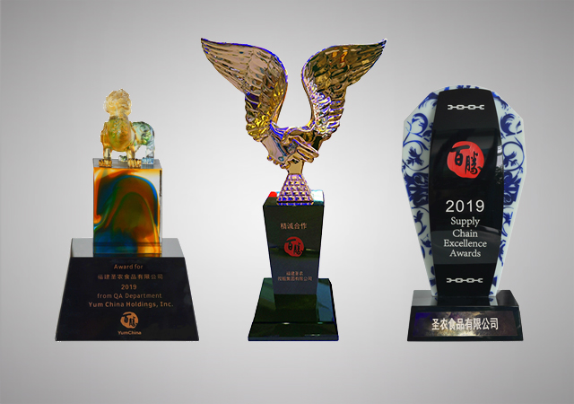 4月12日在“敏捷創(chuàng)新 攻堅(jiān)制勝——2019百勝中國(guó)供應(yīng)鏈合作伙伴大會(huì)”上,圣農(nóng)斬獲“精誠(chéng)合作獎(jiǎng)”、“百勝中國(guó)質(zhì)量獎(jiǎng)”、“卓越供應(yīng)鏈獎(jiǎng)”三項(xiàng)大獎(jiǎng)。