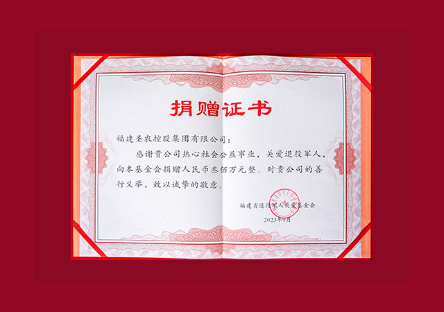 9月20日上午,福建省退役軍人關(guān)愛(ài)基金會(huì)在福州成立,會(huì)上,全國(guó)模范退役軍人、圣農(nóng)集團(tuán)創(chuàng)始人傅光明向基金會(huì)捐贈(zèng)300萬(wàn)元,并擔(dān)任省退役軍人關(guān)愛(ài)基金會(huì)第一屆理事會(huì)名譽(yù)理事長(zhǎng)。